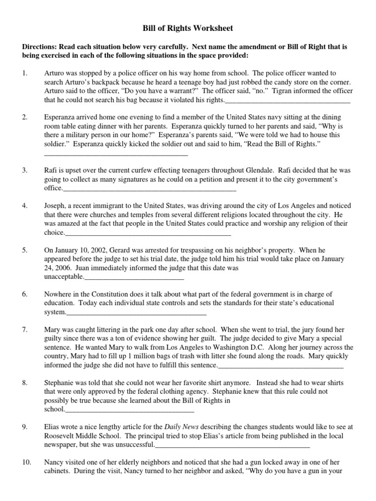 Worksheets are Bill of rights work Bill of rights work Assertive bill of rights Bill of rights work pdf The bill of rights Personal bill of. Bill Of Rights Situations Worksheet Answers Keywords. 9 Pictures about Bill Of Rights Worksheet Pdf - Thekidsworksheet.